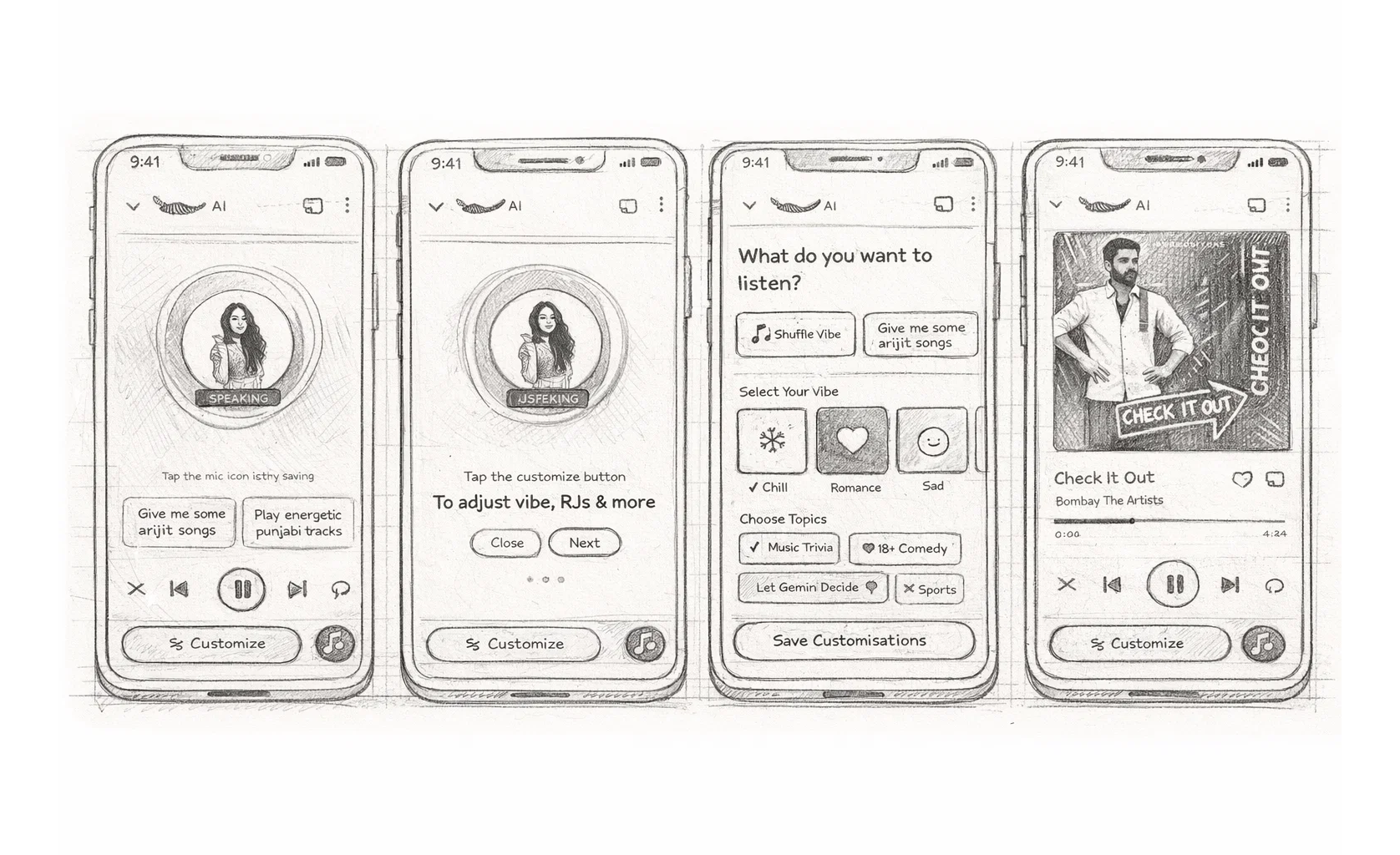 Designing for Audio UI: I had to think beyond screens to the spoken word and sound design. The timing and tone of the AI's voice and the interstitial jingles are critical to the experience.